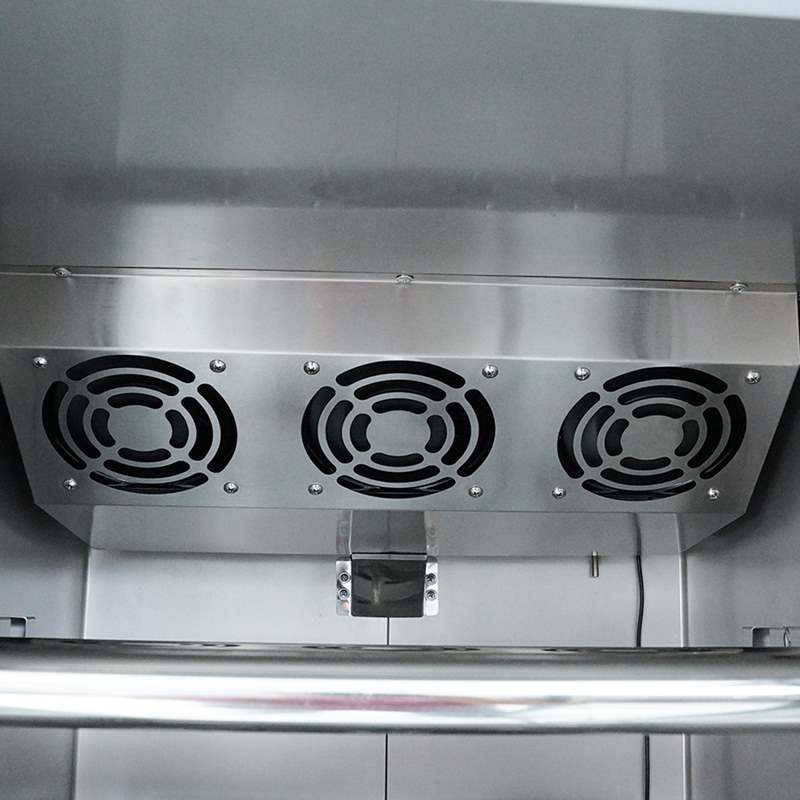Tủ sấy gà vịt FGYG-007 được trang bị hệ thống đèn UV hiện đại, phát ra tia cực tím có khả năng tiêu diệt tới 99,9% vi khuẩn, nấm mốc và vi sinh vật gây hại. Nhờ công nghệ này, gà vịt sau khi sấy không chỉ khô ráo đồng đều mà còn đảm bảo vệ sinh an toàn thực phẩm, hạn chế tối đa nguy cơ ôi thiu và kéo dài thời gian bảo quản trước khi quay hoặc chế biến.